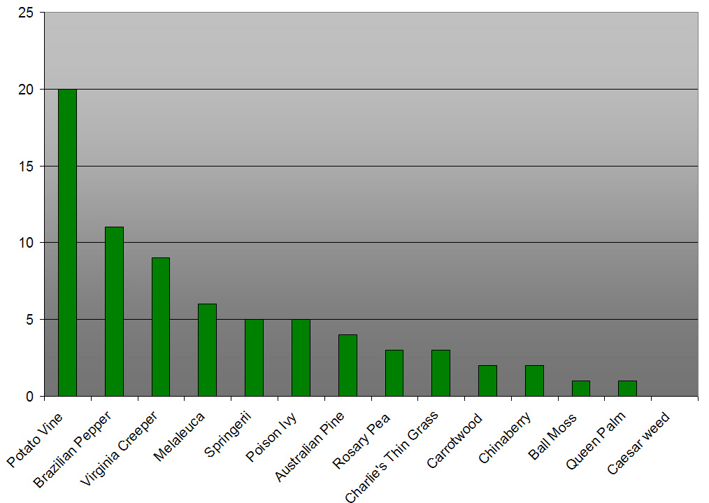 According to the Florida Exotic Pest Plant Council, the spread of invasive exotics is second only to direct habitat destruction in creating adverse effects on Florida’s natural habitats.